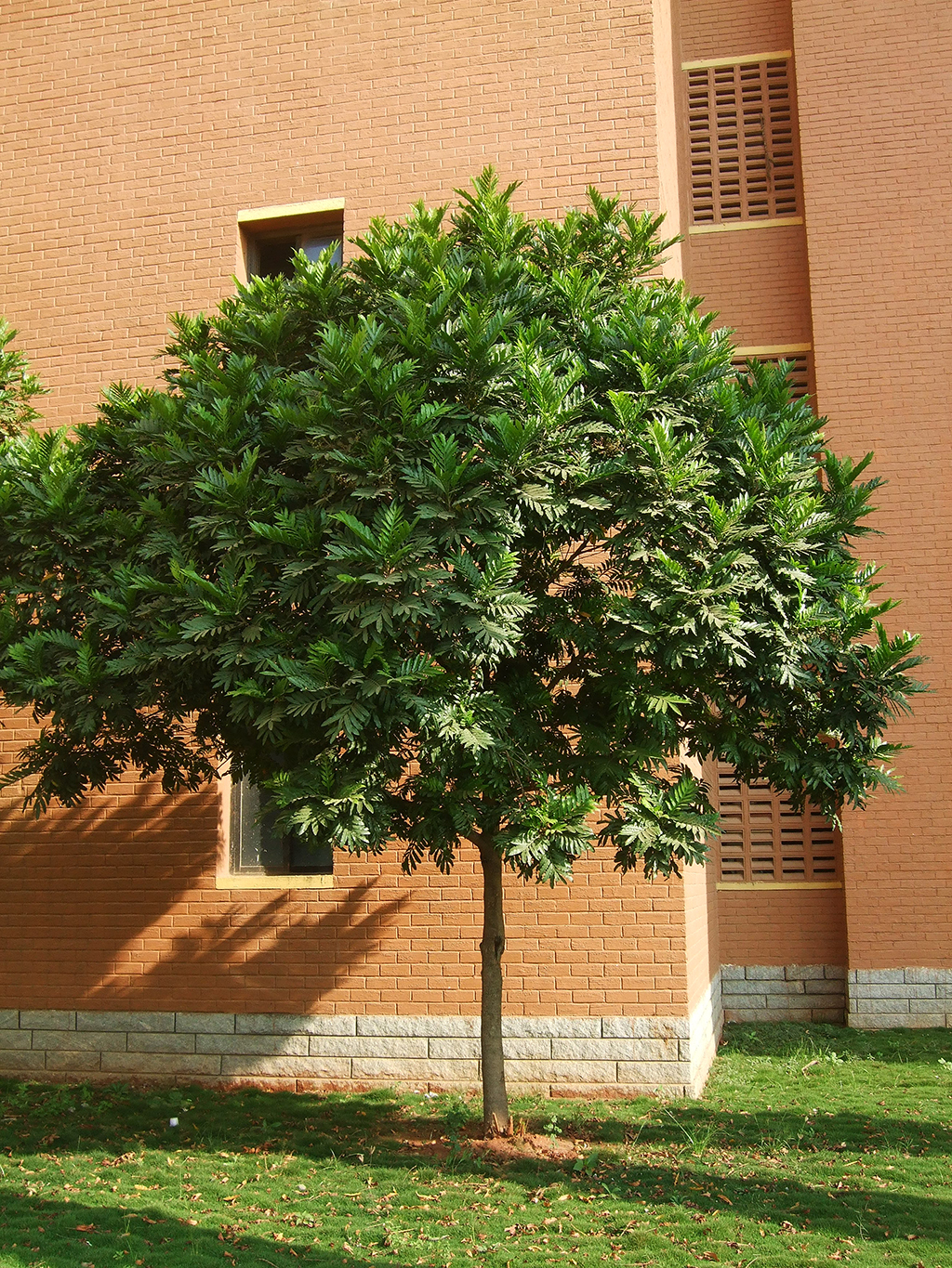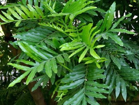 Fern Tree is a medium-sized tree. Leaf spine has a leafy wing on either side between the leaflets. Flowers are small, numerous, unisexual, 6-8 inches long, in leaf axils. Sepals are narrow and smooth. Petals in male flowers are as long as sepals, in females small.