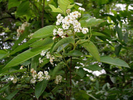 It is 10 m tall, with milky white latex. Leaves are thin, ovate, up to 30 cm long. The seeds are usually light brown in color. It is A large to small sized deciduous tree, yielding milky latex.